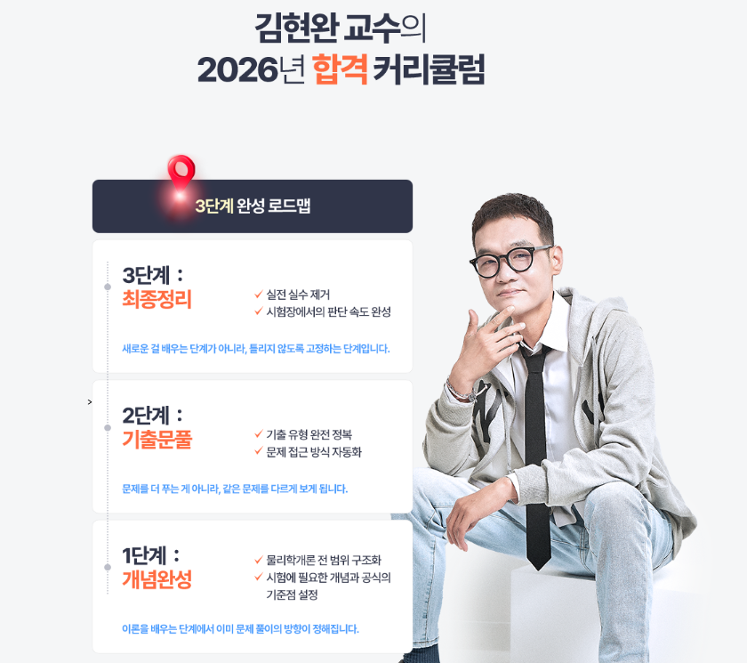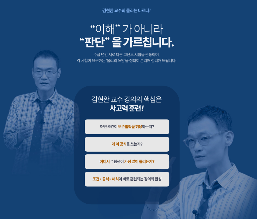 이런 수험생에게 김현완 교수가 필요합니다. - 물리를 이해했는데 점수가 안 나오는 수험생 - 기출을 반복해도 실수가 줄지 않는 수험생 - 공식은 외웠지만 적용이 막히는 수험생 - 7급 기술직 물리를 이번엔 끝내고 싶은 수험생