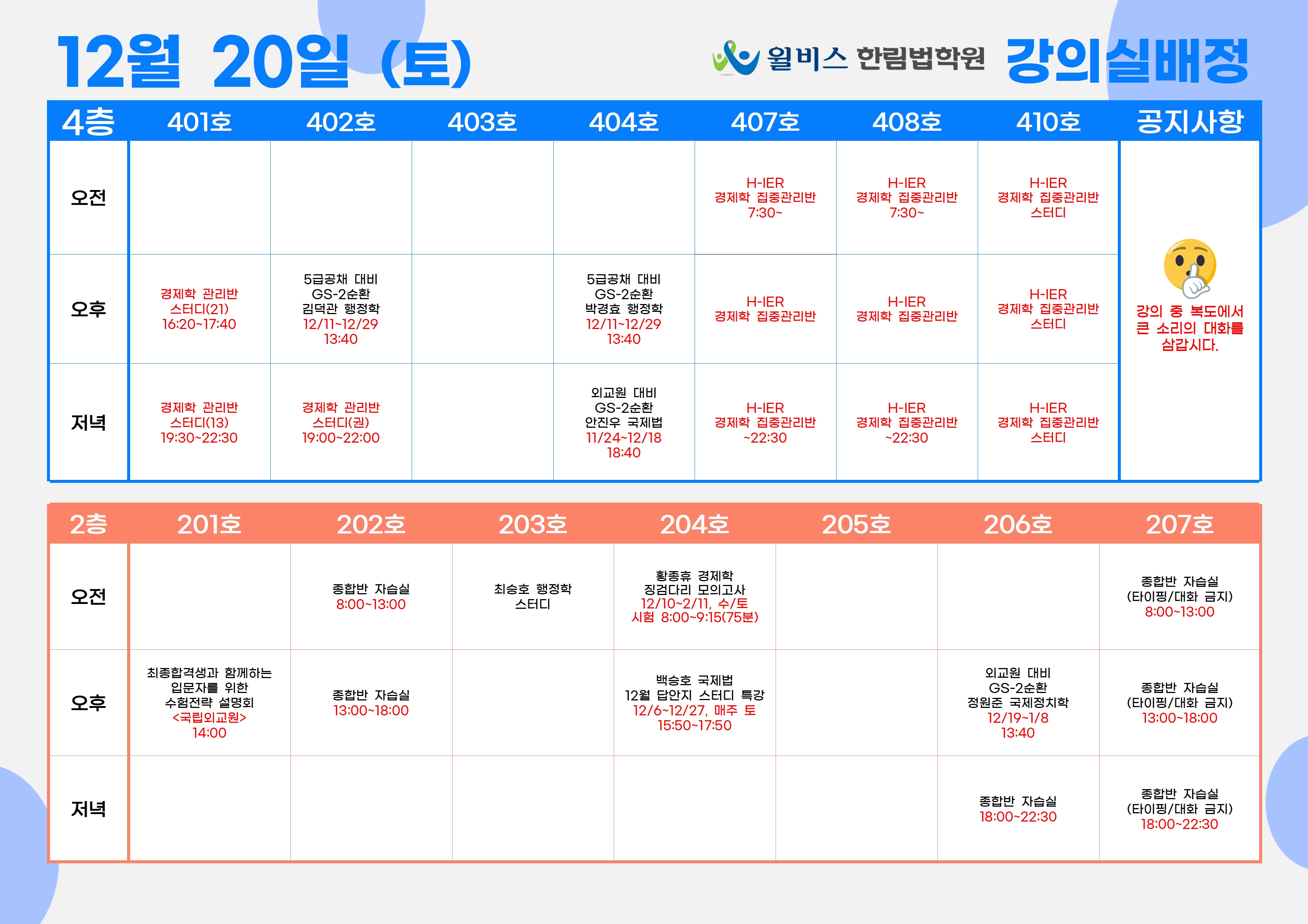 12월 20일(토) 강의실 배정표