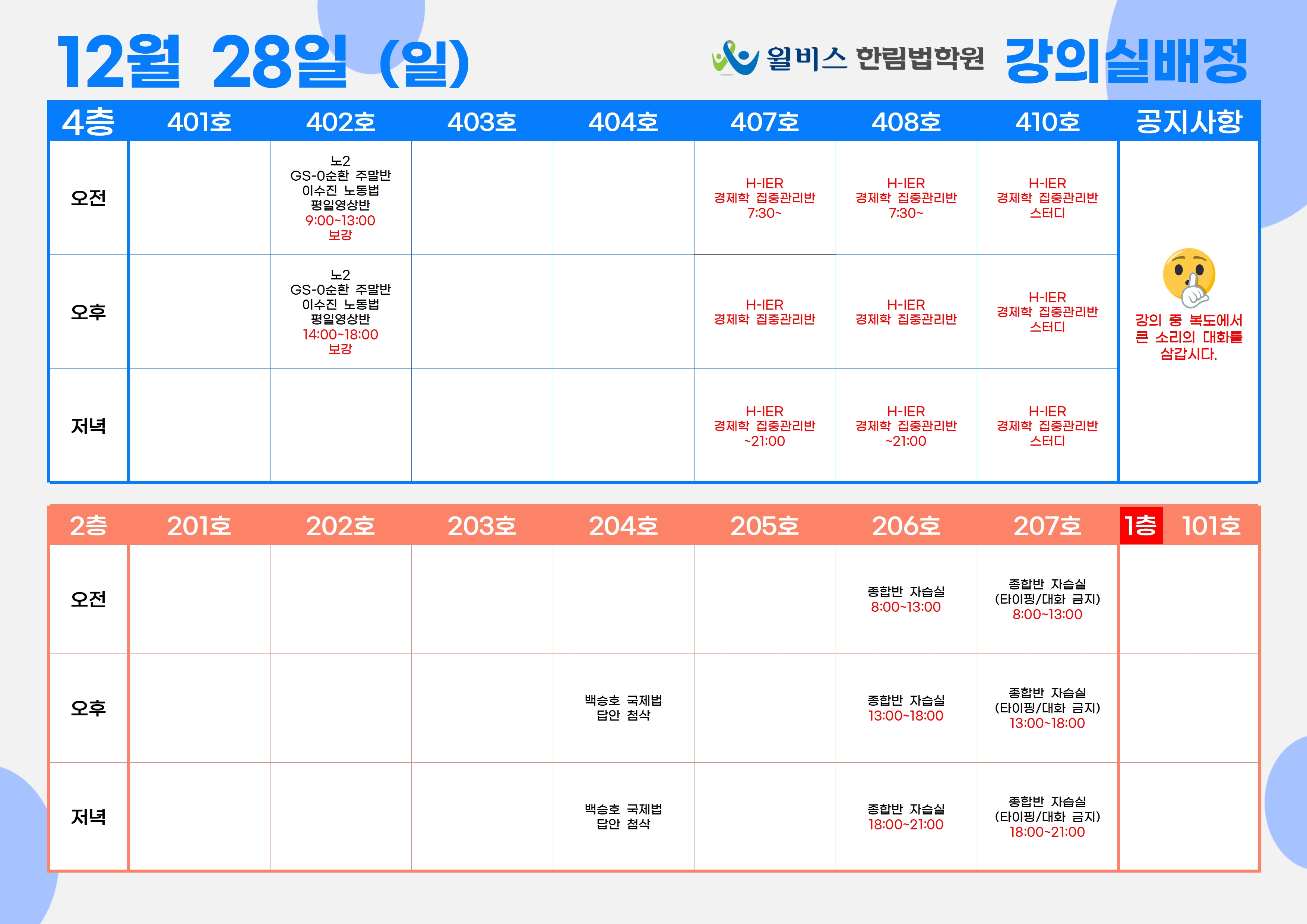 12월 28일(일) 강의실 배정표