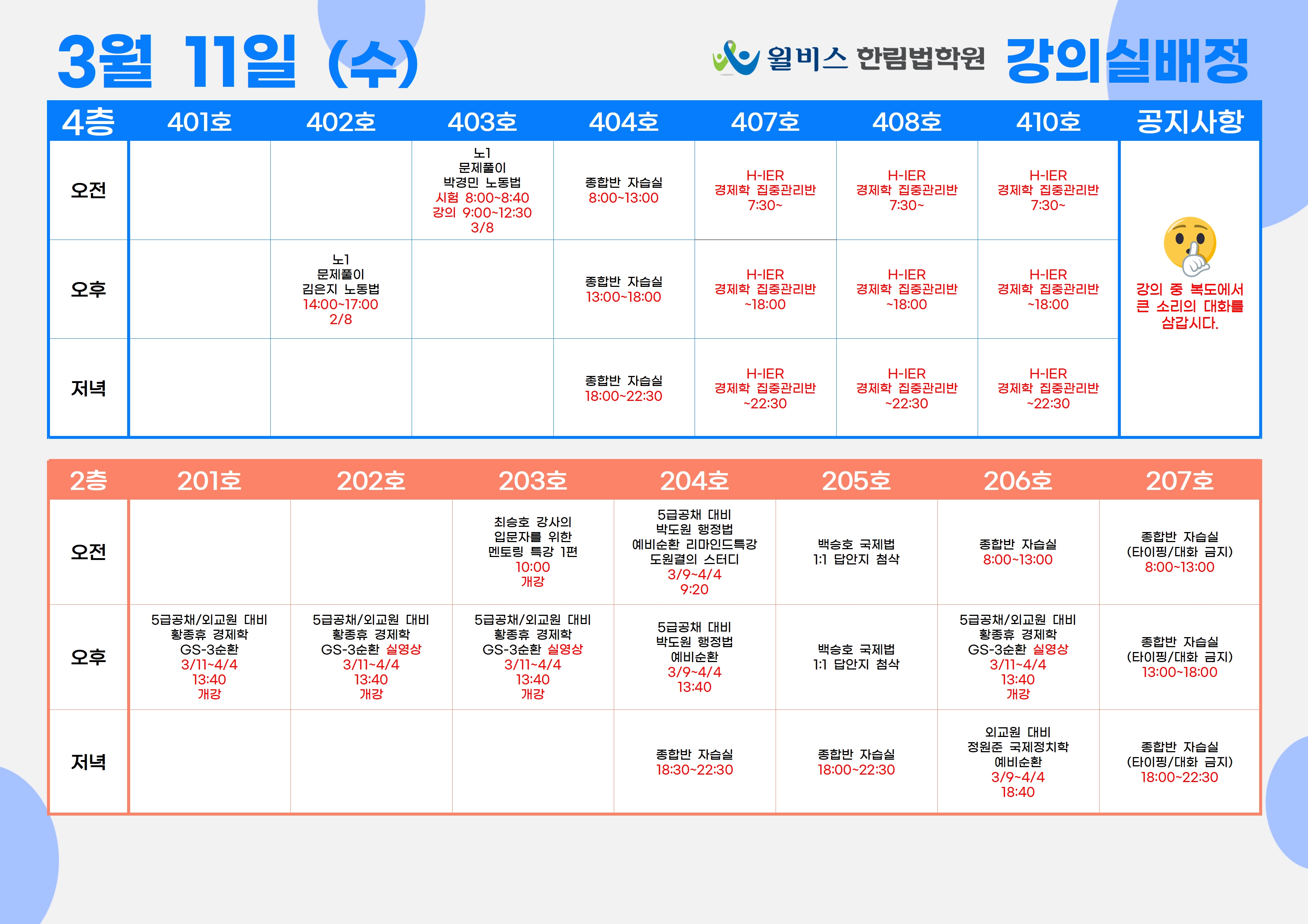 3월 11일(수) 강의실 배정표