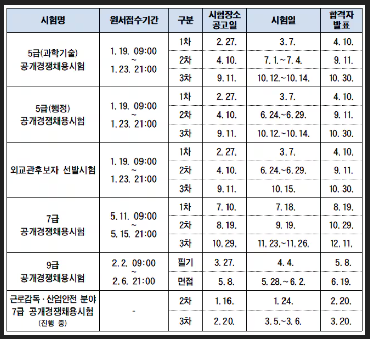 2026년도 국가공무원 공개경쟁채용시험 등 계획 공고