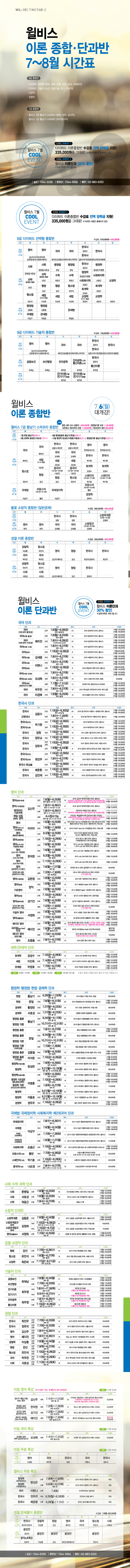 7~8월 종합/단과시간표(여름방학 학습지원 이벤트)