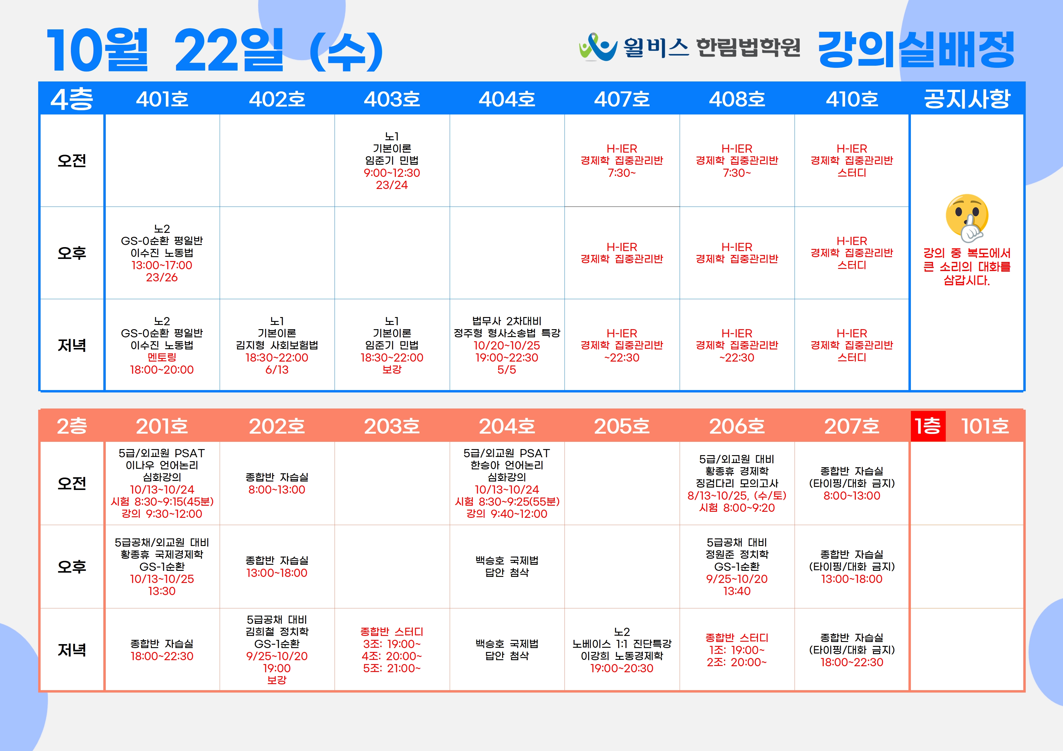 10월 22일(수) 강의실 배정표