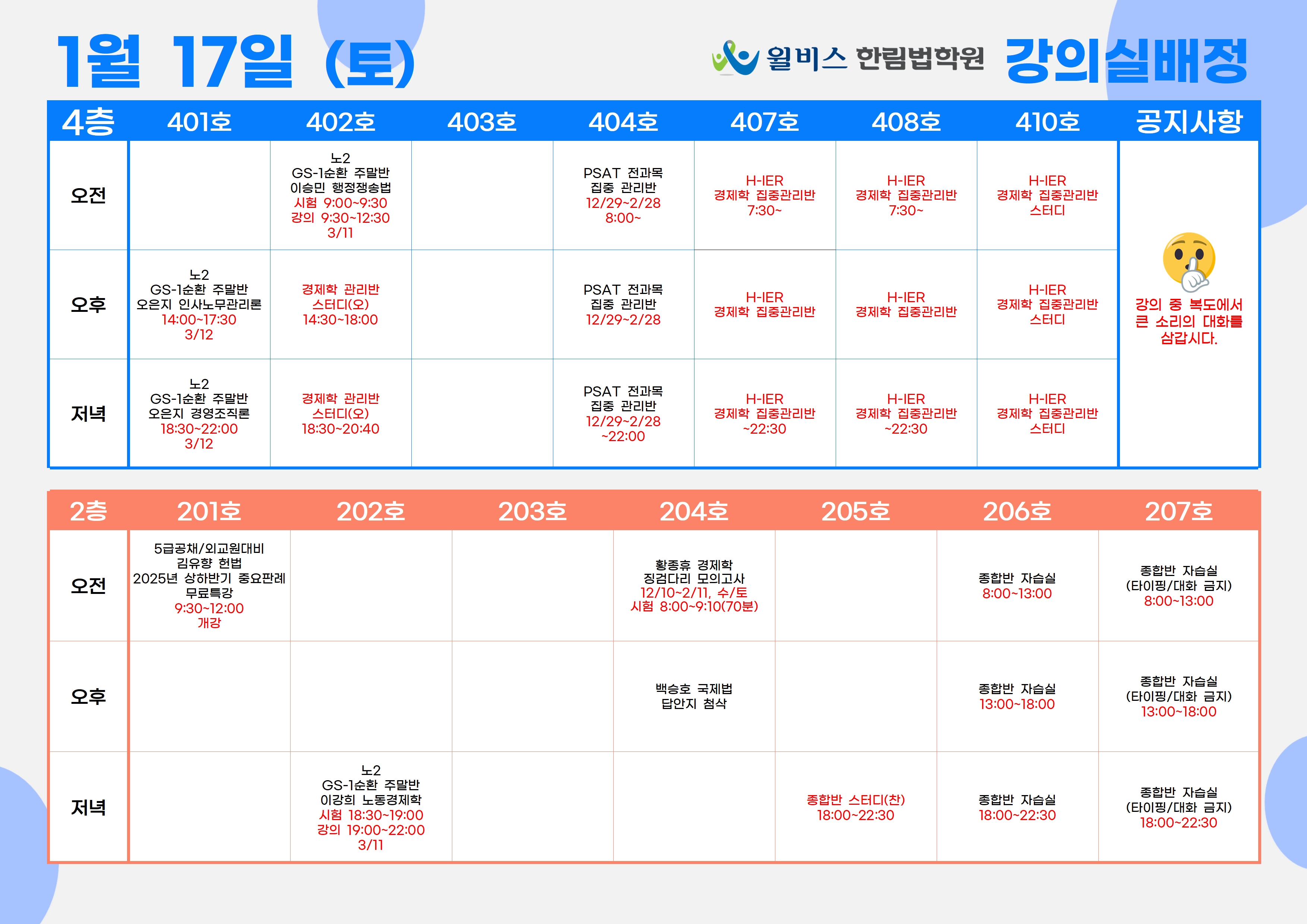1월 17일(토) 강의실 배정표
