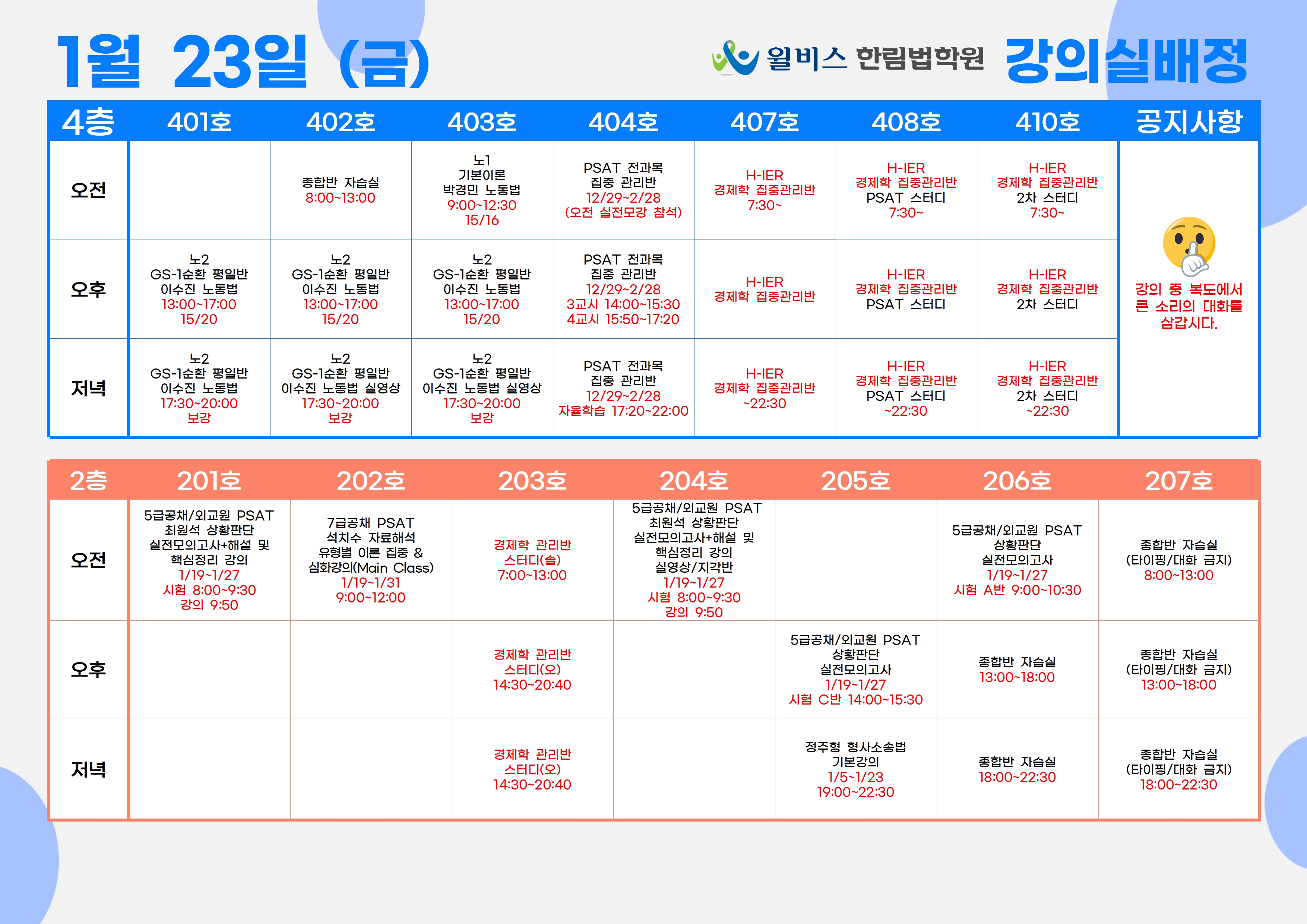 1월 23일(금) 강의실 배정표
