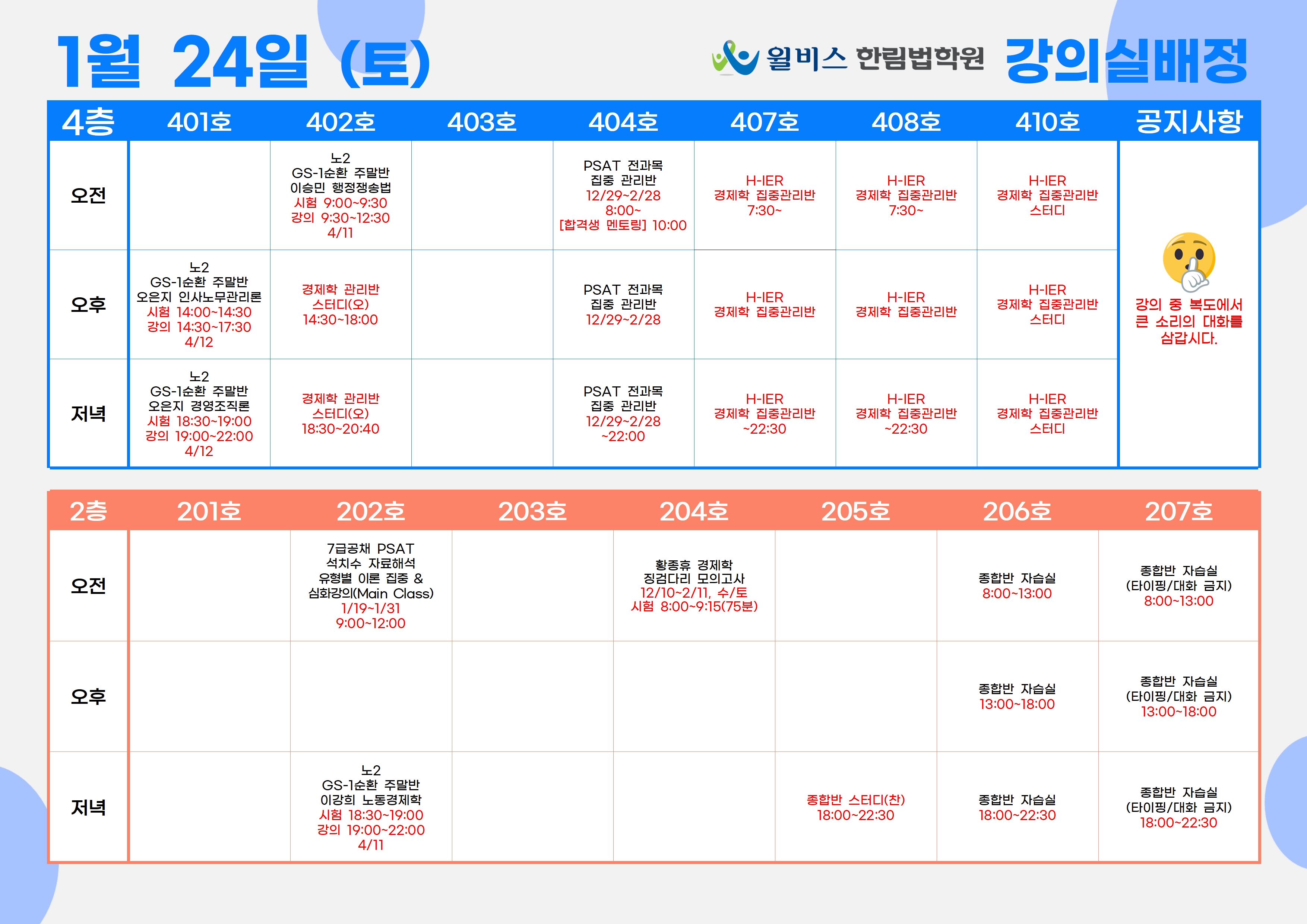 1월 24일(토) 강의실 배정표