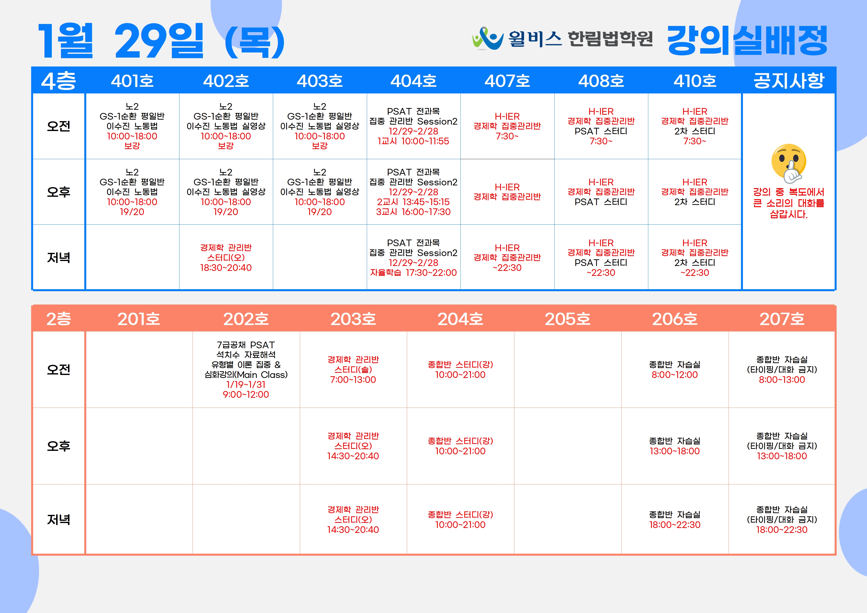 1월 29일(목) 강의실 배정표