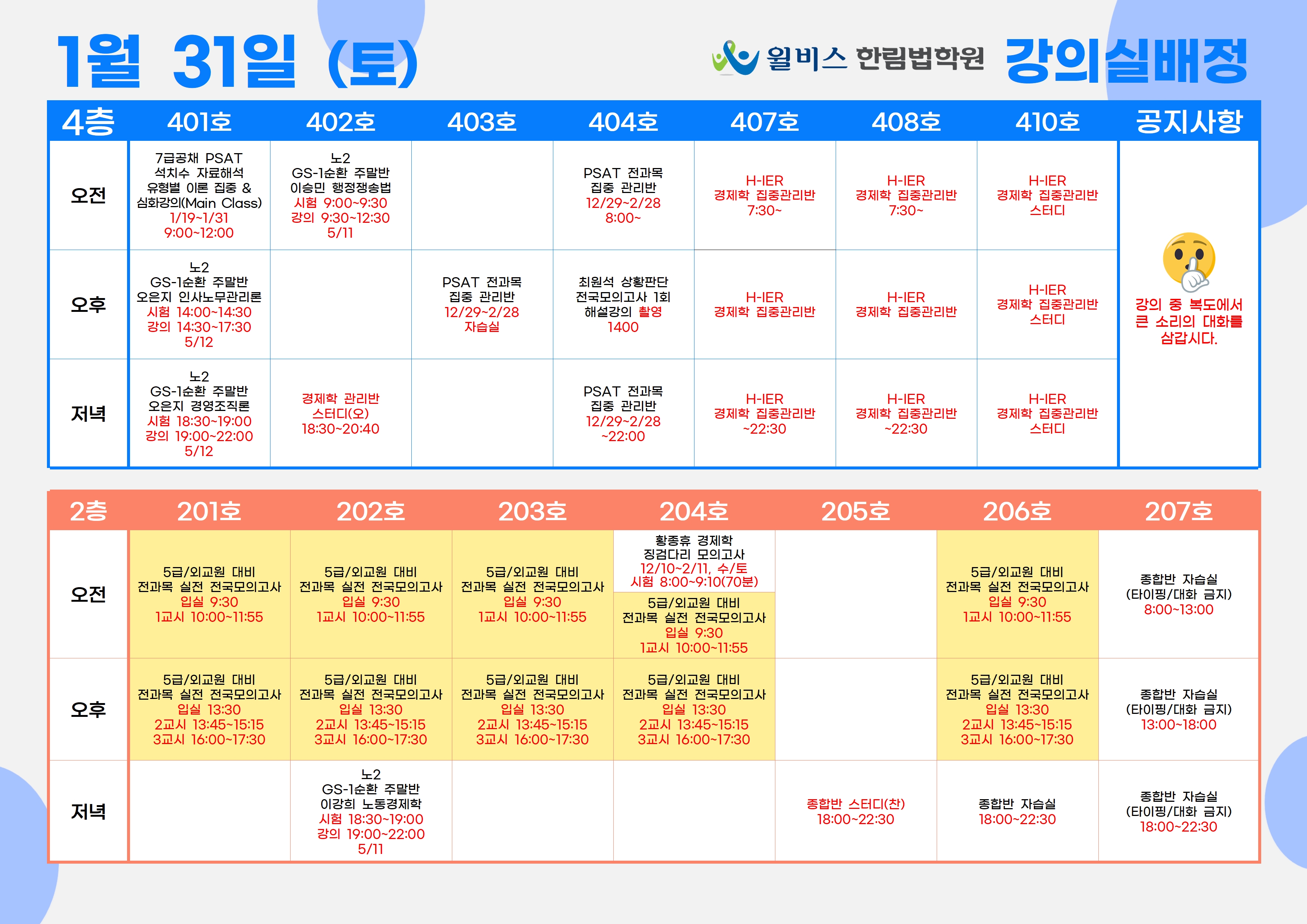 1월 31일(토) 강의실 배정표