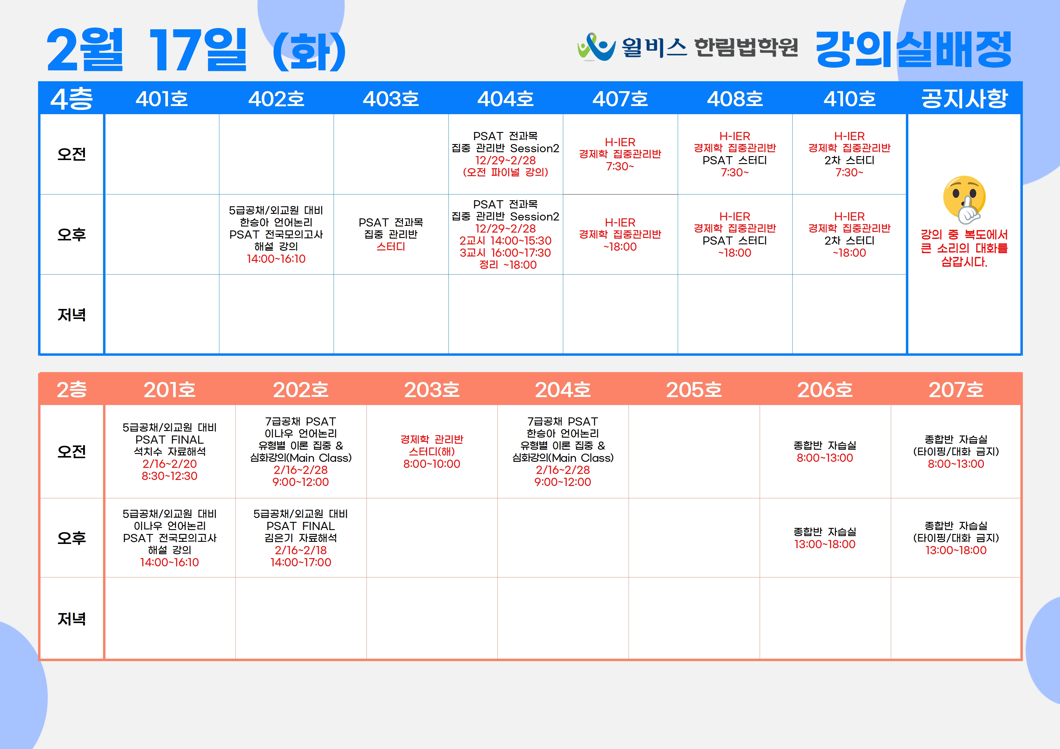 2월 17일(화) 강의실 배정표