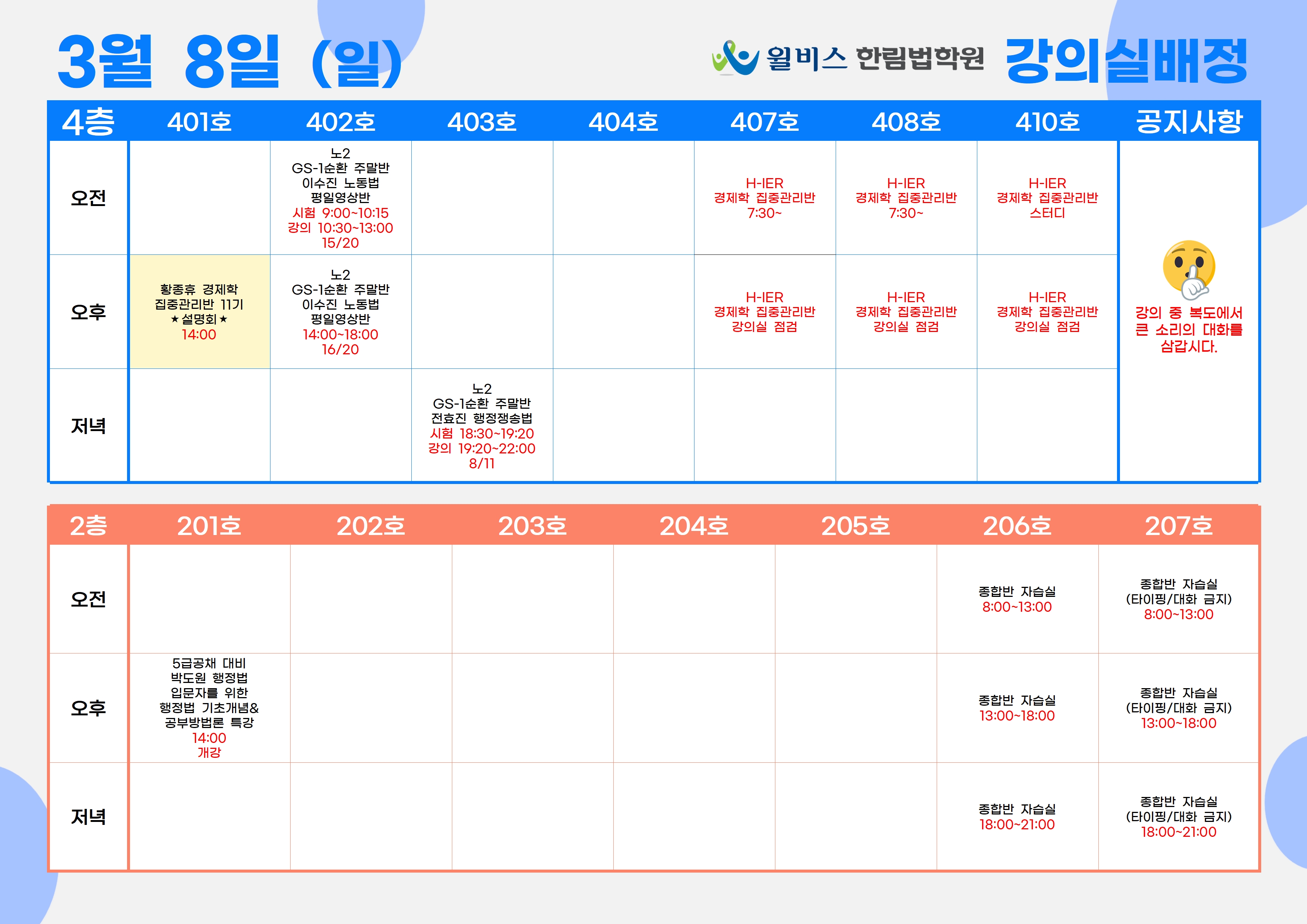 3월 8일(일) 강의실 배정표