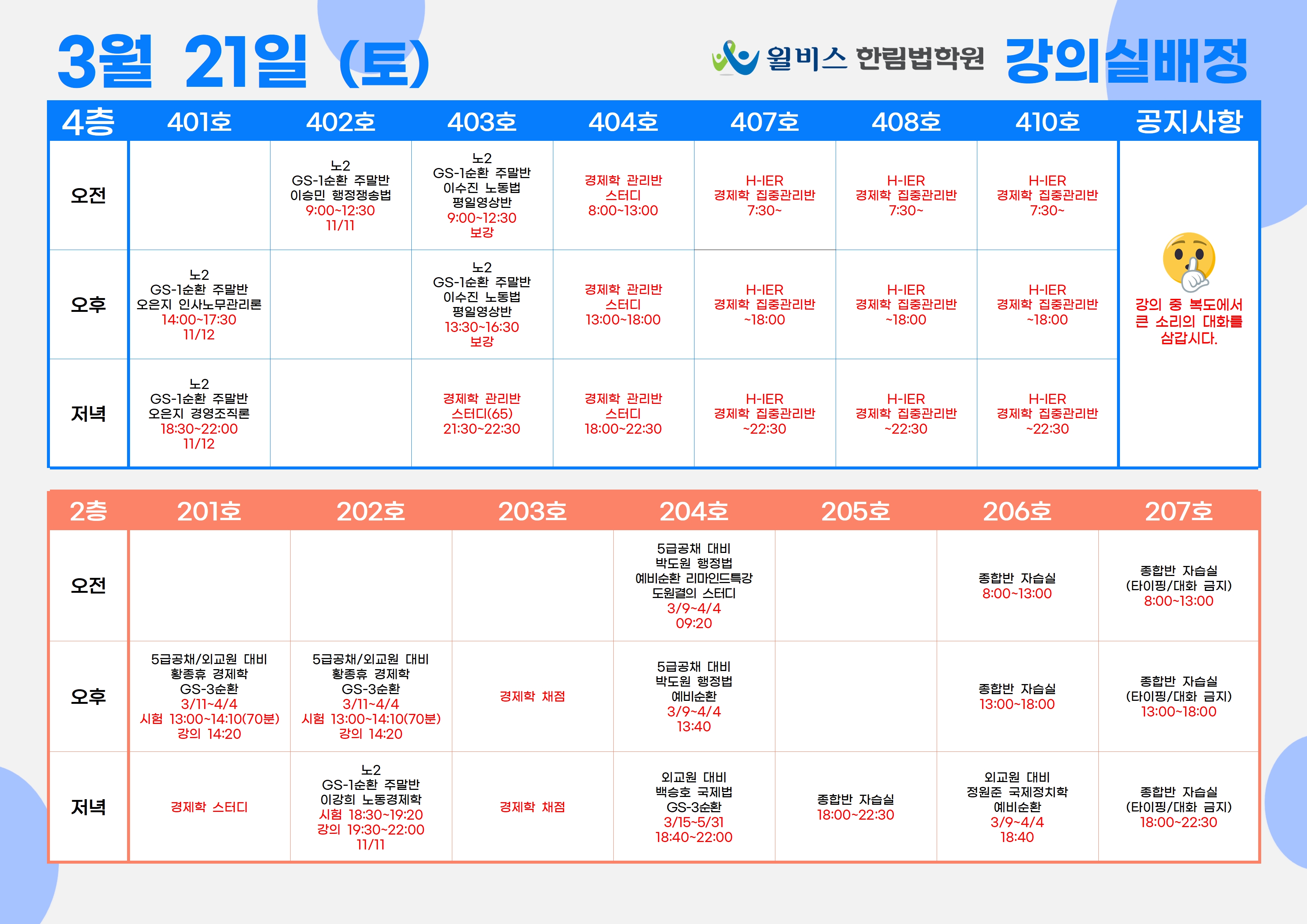 3월 21일(토) 강의실 배정표