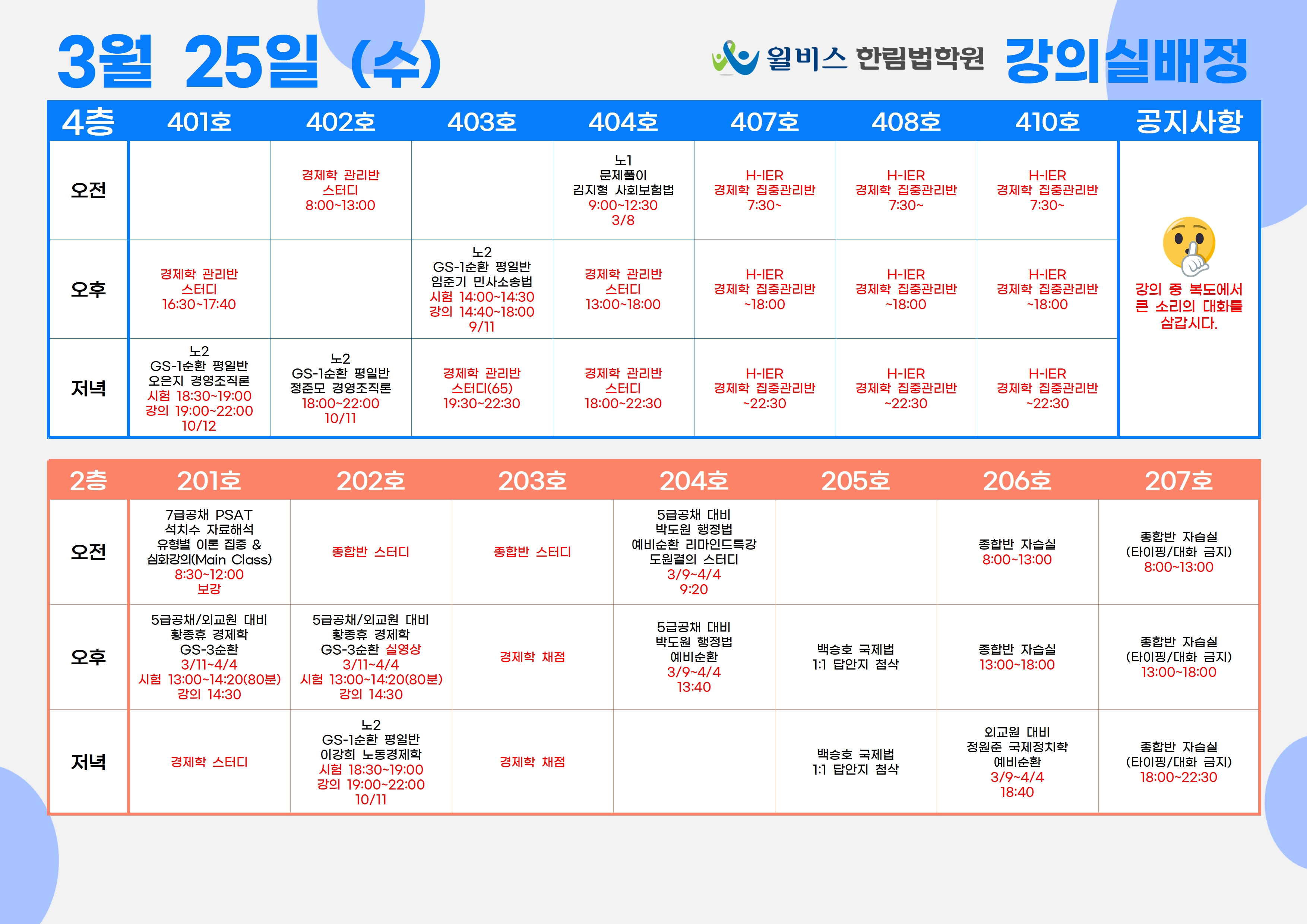 3월 25일(수) 강의실 배정표