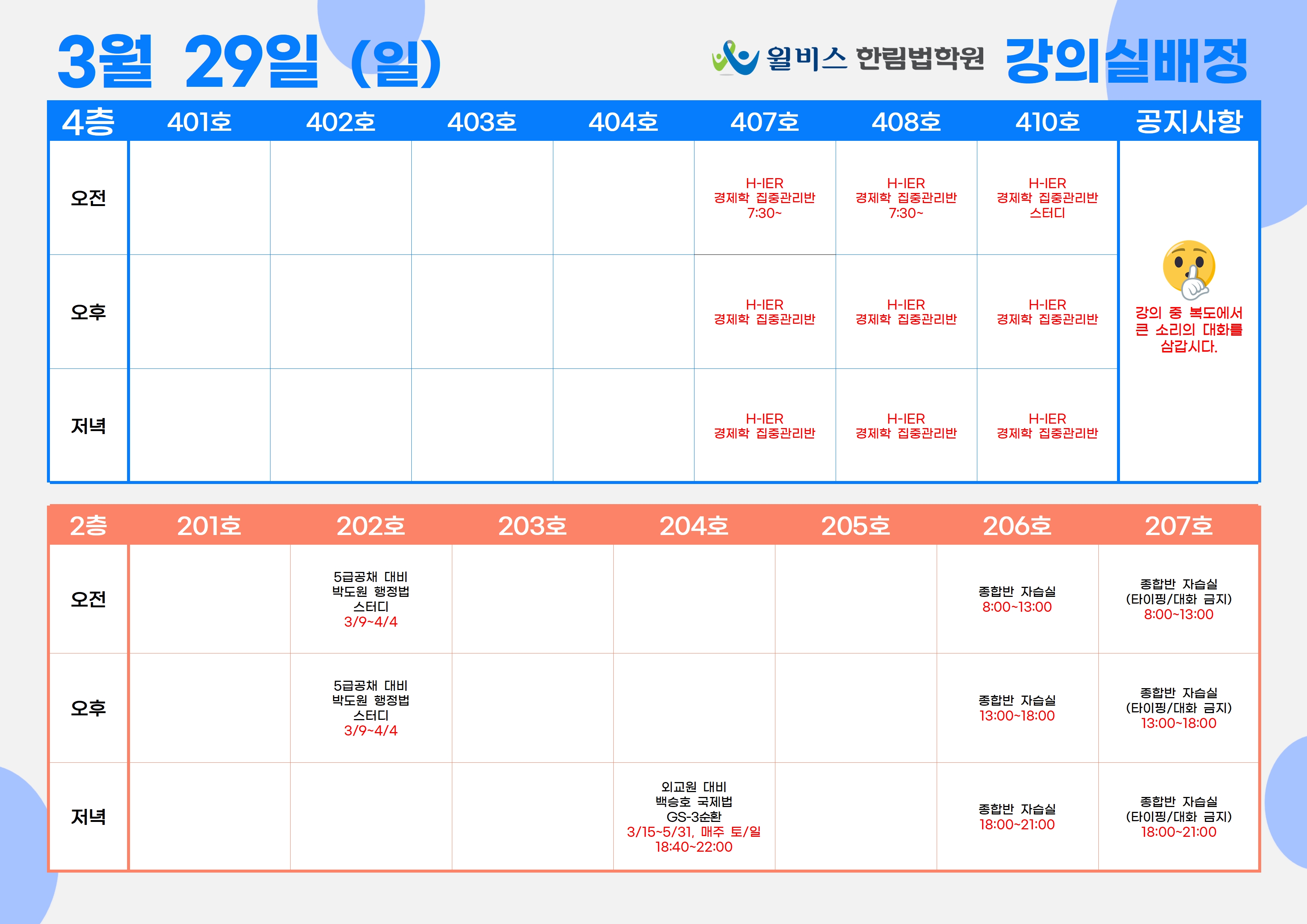 3월 29일(일) 강의실 배정표