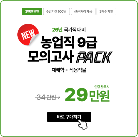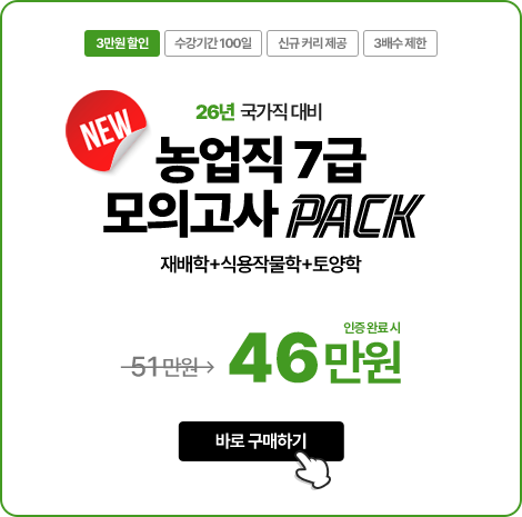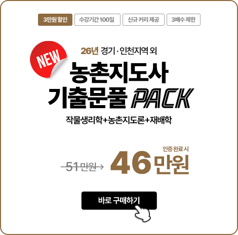 - 문제풀이 : 2025년 대비 농업직 7급/농촌지도사 문제풀이(기출/모고) 과정이 제공되는 패키지 상품입니다.