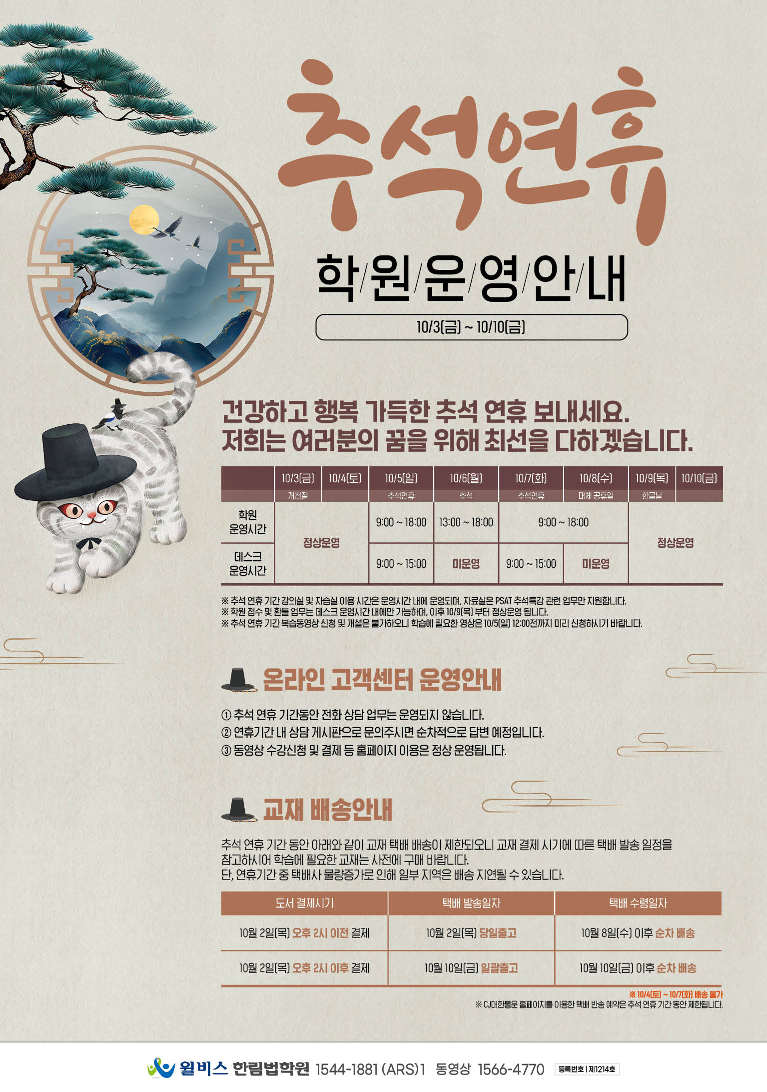 [한림법학원] 추석연휴(10/3,금~10/10,금) 운영안내(10/8,수~ 정상운영)