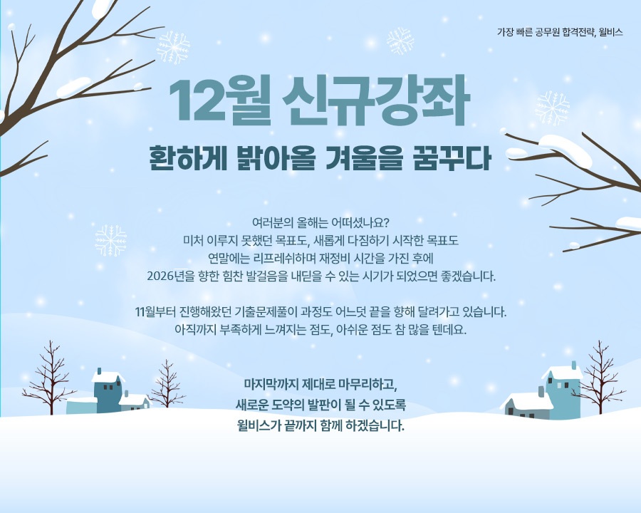 위 안내된 2025년 12월 신규과정은 학원사정에 따라 강의일정 변경 및 강의 추가 등이 있을 수 있습니다.