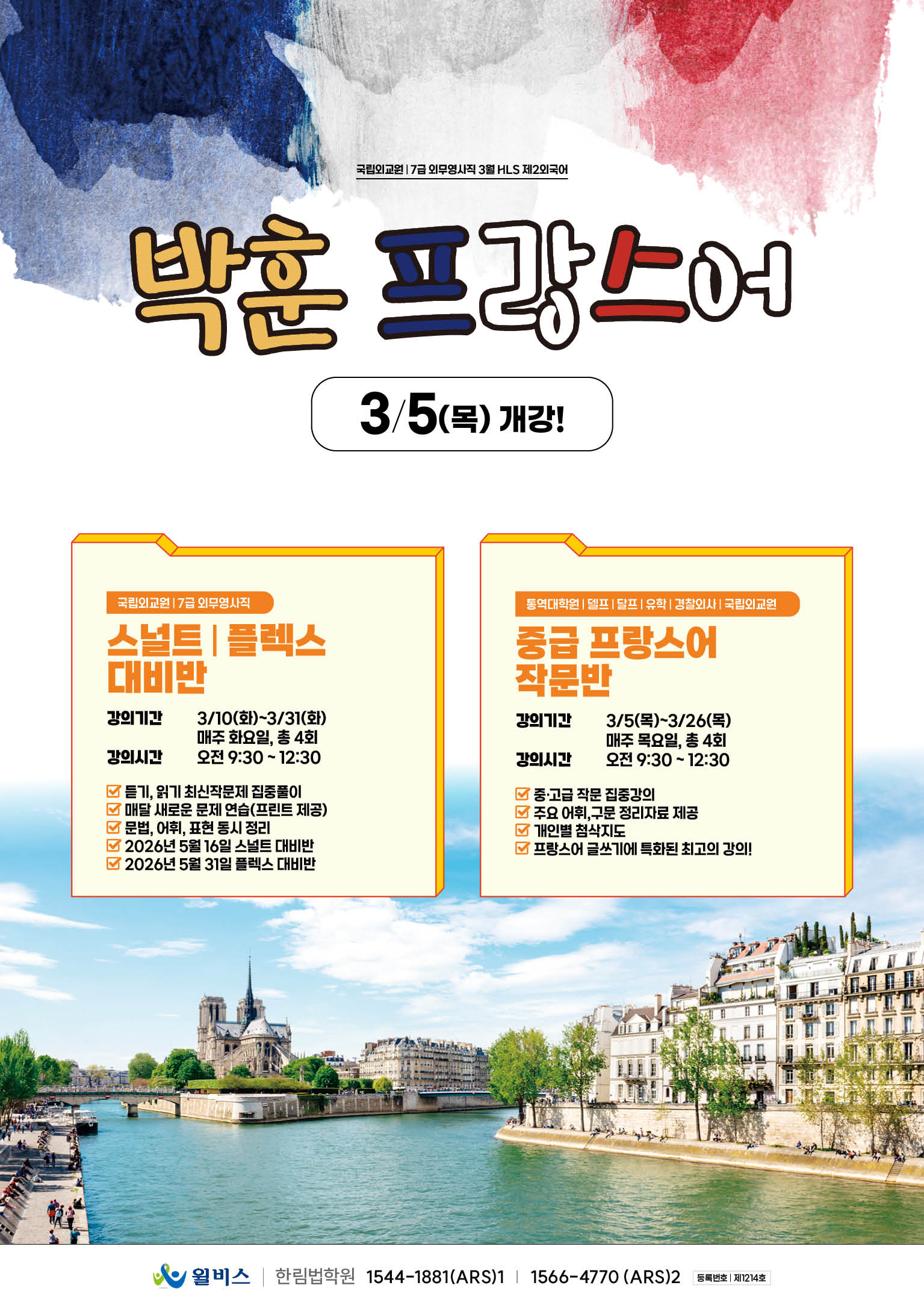[7급 외무영사직] 박훈 프랑스어 2026년 3월 강의 일정